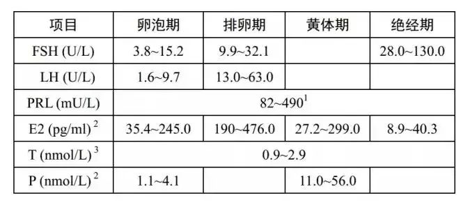 常見性激素六項(xiàng)及正常參考值