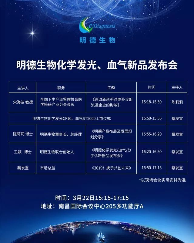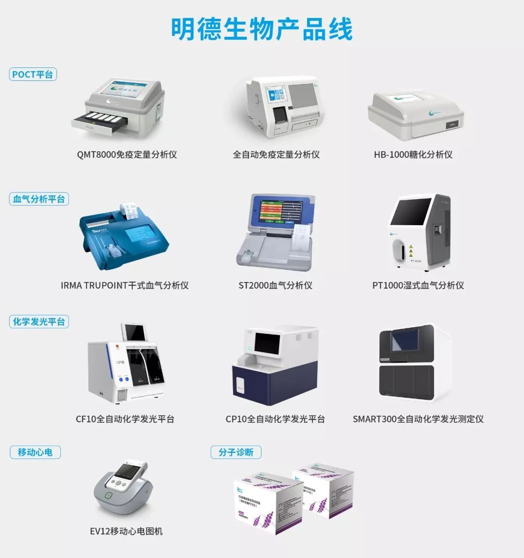 本屆CACLP,明德生物將隆重展出:POCT化學發(fā)光平臺、分子診斷產(chǎn)品、干/濕式血氣分析平臺、胸痛中心及心電網(wǎng)絡(luò)全面解決方案,及新糖化產(chǎn)品、POCT產(chǎn)品等。